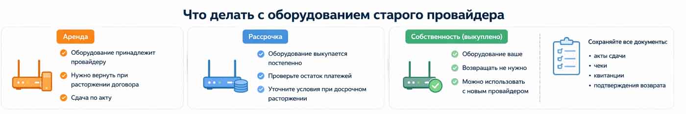 Перед сменой провайдера важно проверить, какое оборудование нужно вернуть, а какое остается у вас